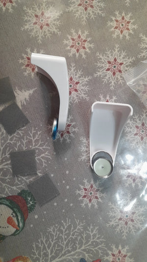 Clean the surface, peel the adhesive backing, press firmly for 30 seconds, and let set for 24 hours. Works on tile, glass, metal, and many smooth surfaces.